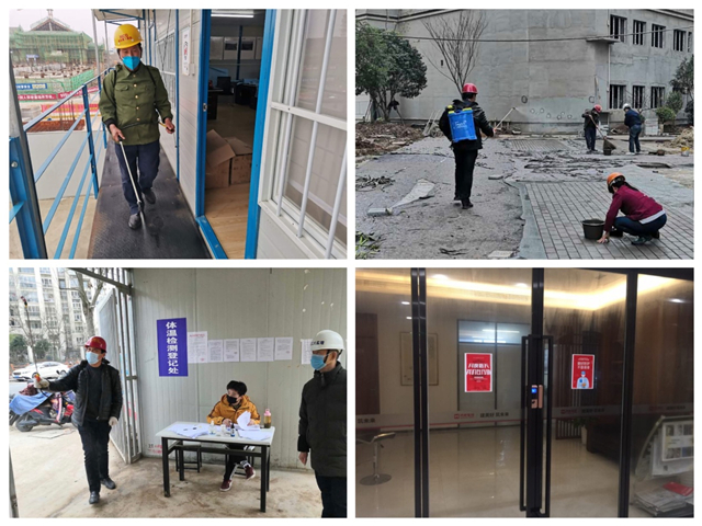 3月2日,公司全面进入开工复工状态,黄山公司在巩固第一阶段疫情防控措施的基础上,根据两个项目逐步复工复产的现实情况,再次升级各类保障机制和流程,首先确定专人负责项目工地的出入人员管控,体温检测登记清晰明了无疏漏,出入人员必须佩戴好口罩;其次,卫生消杀实行全覆盖、循环式、无死角,尤其是加强对办公区域电梯、公共区过道、卫生间及项目现场公共设施等触点区域深度消毒和清洁工作;在公司办公区、东方雅苑及春江丽景项目工地、东方雅苑售楼中心等关键部位的醒目处张贴出入口检测告知、日常消杀作业告知、个人卫生防护提示等等,多途径宣传防疫知识,做到人人自觉防疫;同时按要求设置好临时隔离点,电梯内放置电梯按键专用纸,员工食堂改为分餐模式并增设饭盒回收桶,从细节处避免传染风险;同时,公司疫情防控领导小组在分管领导带领下采取不通知、不定期等方式检查督促各个区域的疫情防控和落实情况,切实保障疫情防控工作有条不紊、警钟长鸣。