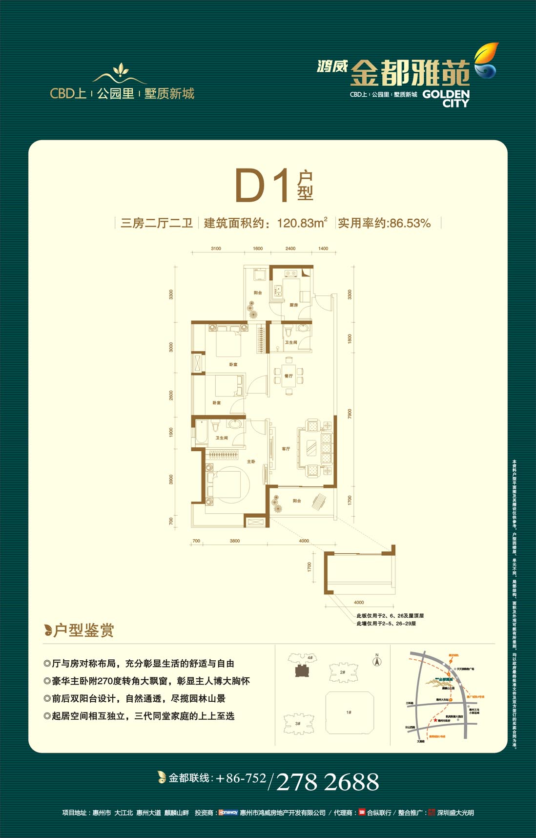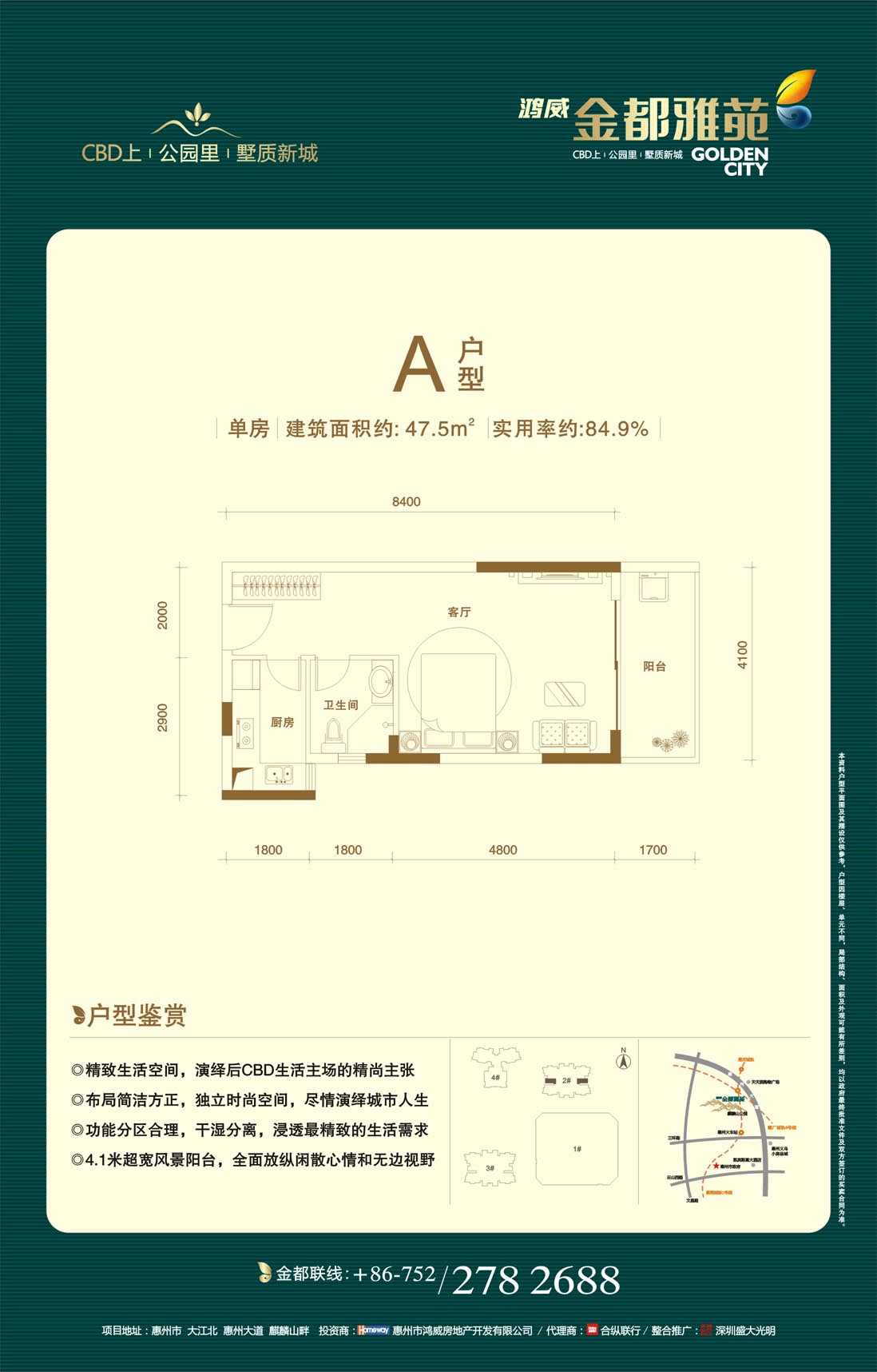 金都雅苑项目位于惠州市惠城区小金口街道办、广惠和惠河高速公路小金口出入口附近,距离惠州市中心8公里,距小金街道办600米,临近惠州火车站、赣深高铁惠州北站;东侧是宽60米的惠州大道,南侧是建设中倚山路,直通赣深高铁惠州北站,为是宽60米的城市主干道,道路顺畅,交通便利。项目宗地总用地面积147263平方米,其中道路占用12723平方米,实际用地面积134540平方米。该项目分四期开发,项目一、二、三、四期均已交付使用,。金都雅苑日臻成熟,拥有超低容积率、超宽楼间距、超高实用率,惠州大道上,轻轨旁,集住宅、商业为一体25万m2的畔山墅质大型人文社区。