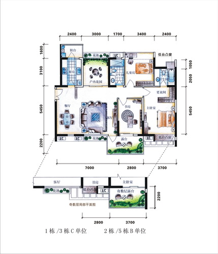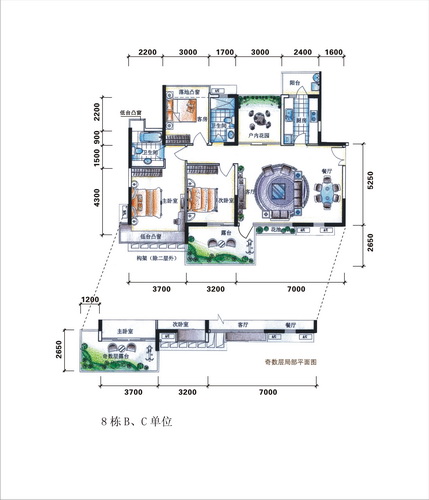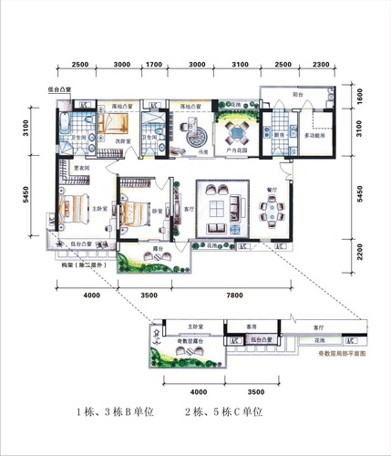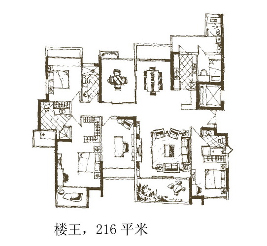户型:约82-216平方米的二房、三房、四房