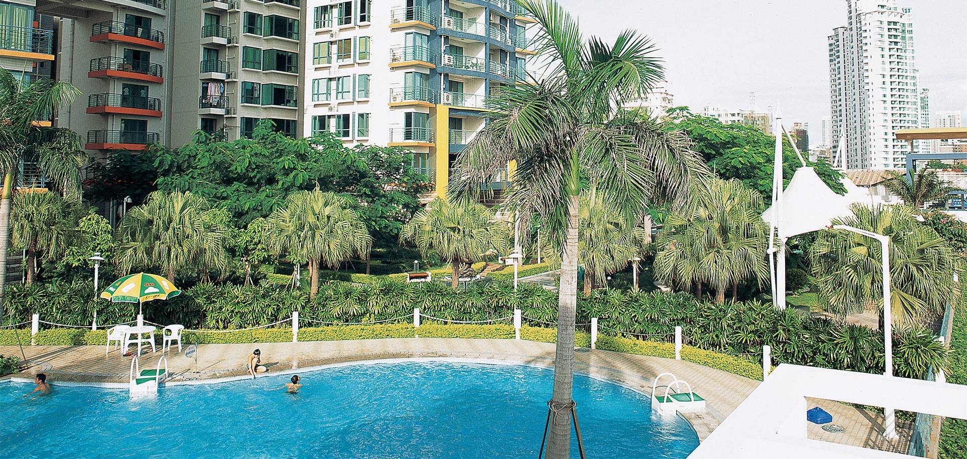 近5000平方米海滨广场,满载海洋风情,蔚蓝情调的阳光泳池、清新的哥伦布广场,明快的椰风大道、极目云天的恁栏听海台,还有迷人的夏威夷岛------构成一个漫步休闲、充满假日情调的滨海空间。