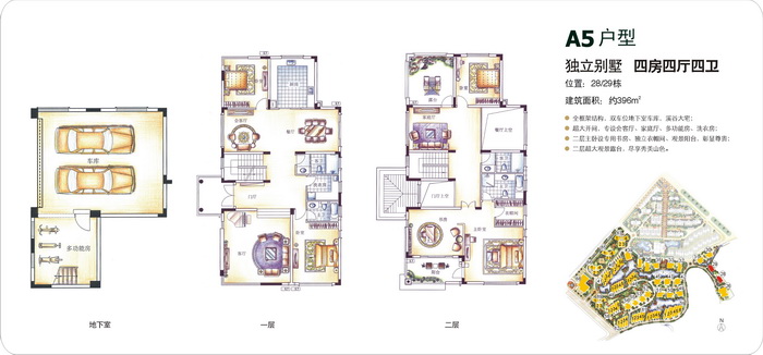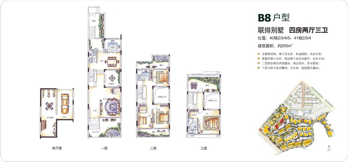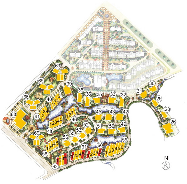 建筑形态:高层洋房、联排别墅、独立别墅、星级酒店