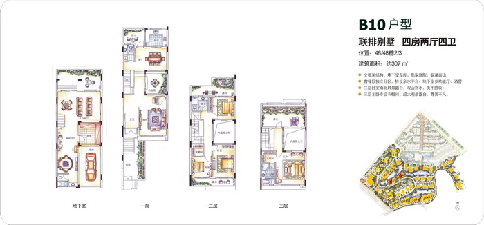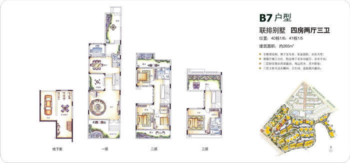 多样化建筑形态:联排别墅、独立别墅、宽景高层洋房及星级酒店超低密度人文社区,满足成功阶层对居住的品位需求。