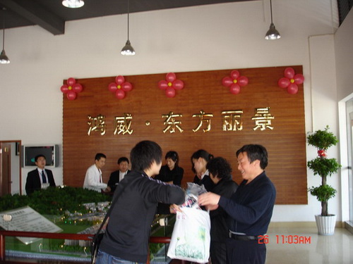 本项目于4月26日正式开盘,开盘当天各项工作均有条不紊,现场秩序良好。当第一位业主敲响祈福锣的那一刻,所有的工作人员自发地鼓掌,使客户深深地感动,一再致谢,现场气氛温馨感人。