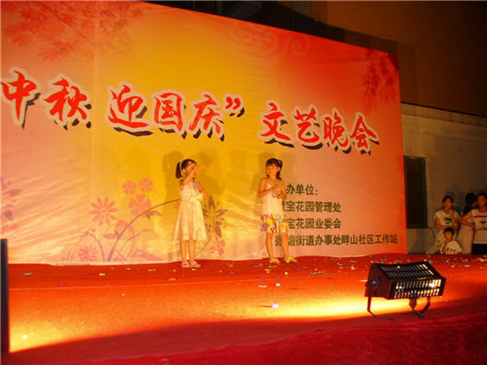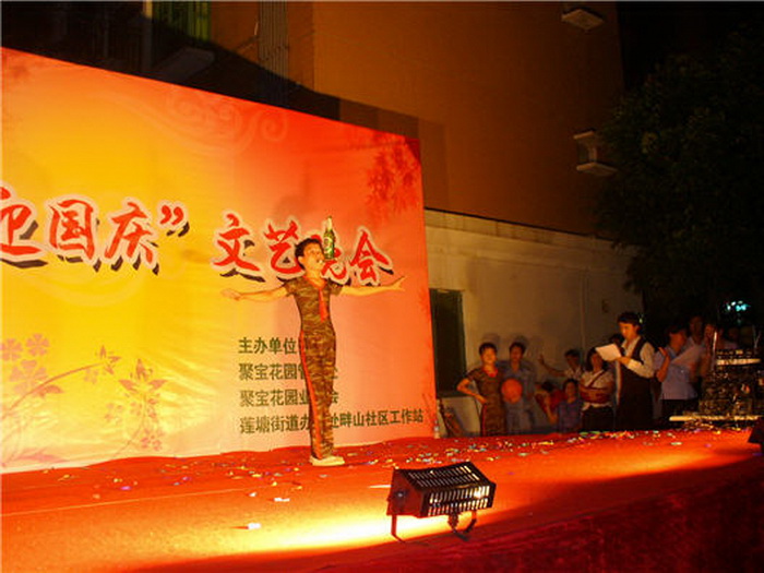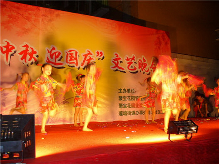 为了丰富社区的文化生活,建设和谐社区,9月12日晚,在聚宝花园东面广场,由聚宝花园管理处、聚宝花园业委会、莲塘社区工作站共同主办了一场“贺中秋·迎国庆”文艺晚会。 晚会内容丰富,节目精彩,受到广大业主/住户好评。
