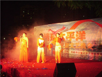 为了丰富社区的文化生活,建设和谐社区,9月6日晚,东方雅苑管理处联合太平洋保险,在东方雅苑二楼的中心广场举办了一场“迎庆中秋·情系太平洋走进社区文艺晚会”,晚会的节目丰富多彩,演员都是由太平洋保险聘请的专业团队。此次晚会受到广大业主/住户好评,真正的为小区业主送上了一份健康娱乐的精神套餐。