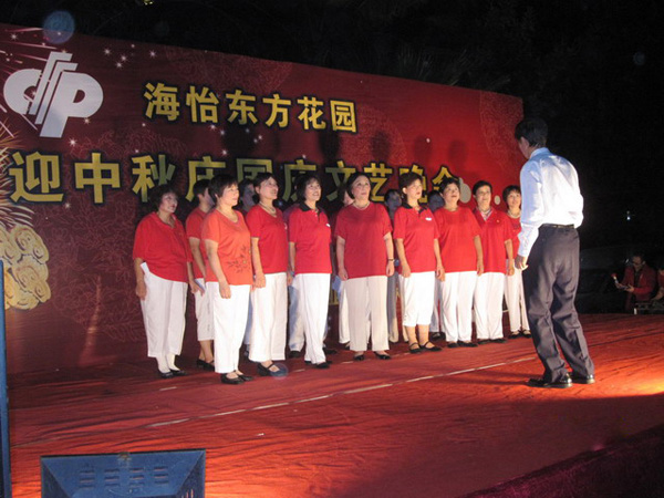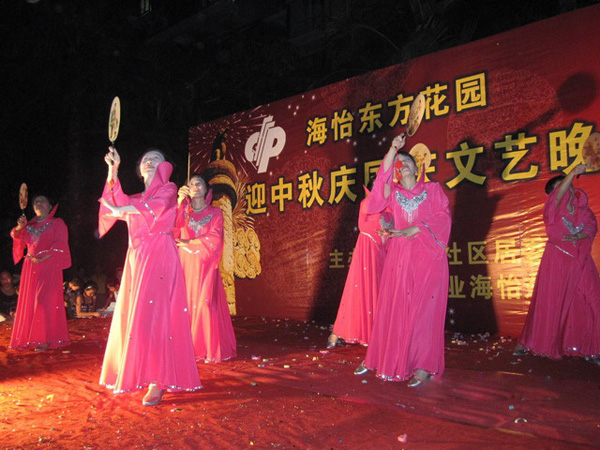 为了丰富小区文化生活,为中秋、国庆双节增添节日气氛,通过精心筹备和安排,9月18日晚,海怡东方管理处在小区南门广场举办了“迎中秋•庆国庆文艺晚会”。晚会节日丰富多彩,有小区老人协会舞蹈队表演的大合唱、各类舞蹈、诗朗诵、杂技、男女声独唱等,让台下观众品尝到一份丰盛的文化大餐。在晚会进行过程中还穿插了抽奖环节,管理处邀请了社区工作站吴站长、业委会主任黄正龙等嘉宾为晚会活动进行抽奖,为整个晚会增添了热闹的气氛。