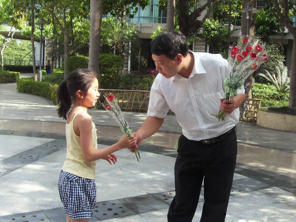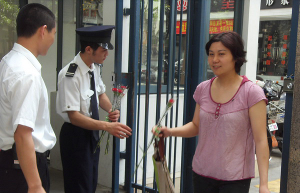 2011年5月8日一大清早,工作人员就将一枝枝包装精美、洋溢着笑脸和温情的“康乃馨”送给小区内的业主妈妈们,同时,也把花送到孩子们的手中,让孩子们亲手送给自己的妈妈,用实际行动来回报母亲对自己的爱。