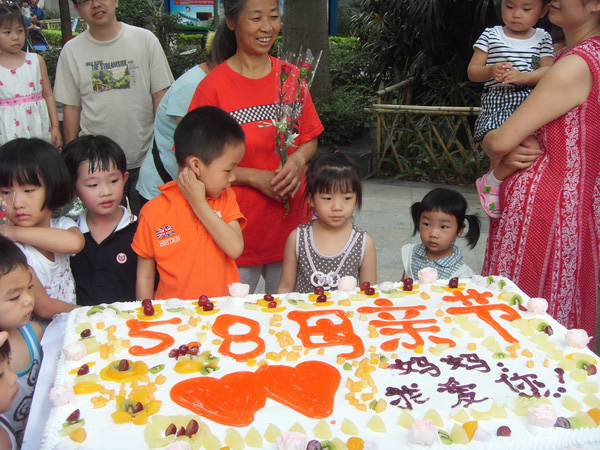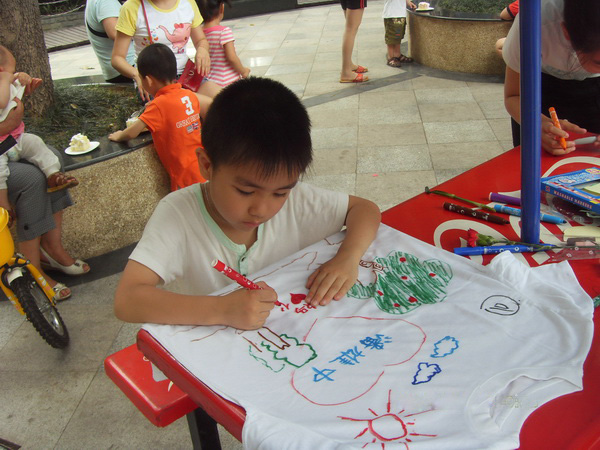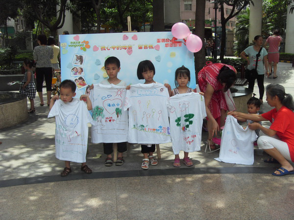 我们还组织孩子们积极参与到“我爱妈妈真心绘”的活动中来,孩子们在准备好的白色T恤上用彩笔绘出美丽的图案。同时,管理处还提供蛋糕给业主们共同分享。绘画活动结束后,由业主们共同投票选出画得最好的前三名,并颁发奖品。最后由孩子们亲手将绘制的T恤衫送给自己的妈妈。