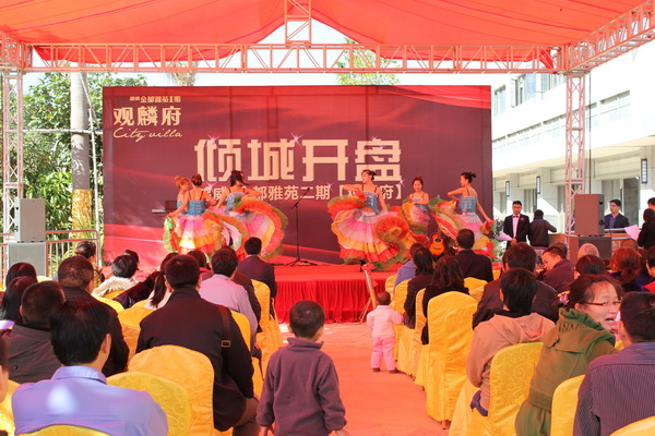 开盘选房前,公司特意为等候选房的客户献上了一场精彩的表演,有摇滚乐队、冰上芭蕾等,等候区的客户们略带着急、忐忑的心情,一边看着舞台上的精彩表演,一边等待着进入营销中心选房。早上10:00选房正式开始,舞台区里,宾朋满座、座无虚席,所有人都为了能够挑选到心仪的房子而期待着。虽然目前房地产市场整体低迷,但开盘当天仍售出30套。吸引大家的仍是鸿威的品质、小区的配套、优越的地理位置、四通八达的交通,以及小区过硬的配套:1.1万㎡集中性商业配套、1000平米私家泳池、3000平米幼儿园,在这里能够真正感受到与城市为邻,与自然相伴的生活境界,是追求品质生活的最高境界。这种舒适性、宜居性同时性价比高的楼盘,在小金片区,仅公司一家。虽然在目前的市场行情下,购房者观望心态浓,购房更趋于理性,整个市场成交量不大,但与当天开盘的其他三个楼盘相比,我们仍居首位。