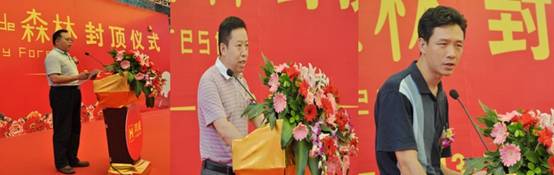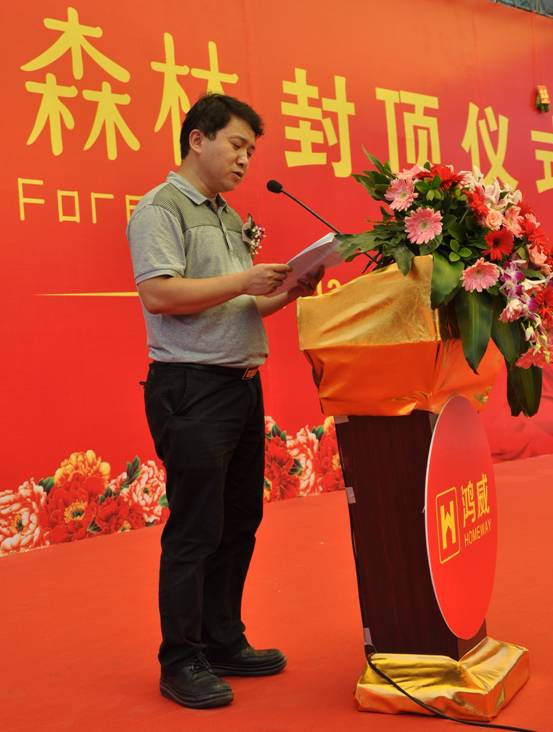 在封顶仪式现场,深圳市深润川实业有限公司总经理张剑青首先发表致辞,他代表项目投资与开发单位,向各参建与合作单位、政府各相关部门及社会各界朋友表示衷心的感谢。他希望在下一阶段进行的建筑装修、水电安装和室外工程施工中,参加项目建设的各合作单位,本着“诚信互利、精心组织、科学管理、确保质量、争创品牌”的合作宗旨,进一步强化项目质量、进度与安全文明管理,争创深圳市优质样板工程,努力把鸿威de森林项目建设成为龙岗中心城龙西五联片区的标志性建筑。