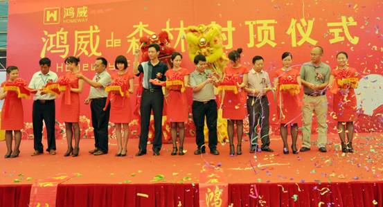 2013年7月12日上午,鸿威de森林彩旗飘扬,锣鼓喧天,鸿威de森林项目一期封顶仪式隆重举行。深圳市深润川实业有限公司以及江苏省华建建设股份有限公司、深圳市中行建设监理有限公司等相关合作单位、媒体代表近40家单位共同见证了这一荣耀时刻。