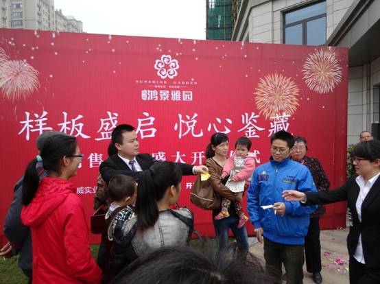 2014年是鸿威的“营销年”,为了抓住销售旺季的契机,通过展示良好的形象促进销售,在无锡公司领导的带领下,在集团领导、设计和工管中心同事的大力支持和指导下,经过无锡公司工程部、营销部数月的共同努力,终于在4月27日如期迎来了无锡·鸿景雅园销售中心及样板房盛大公开。