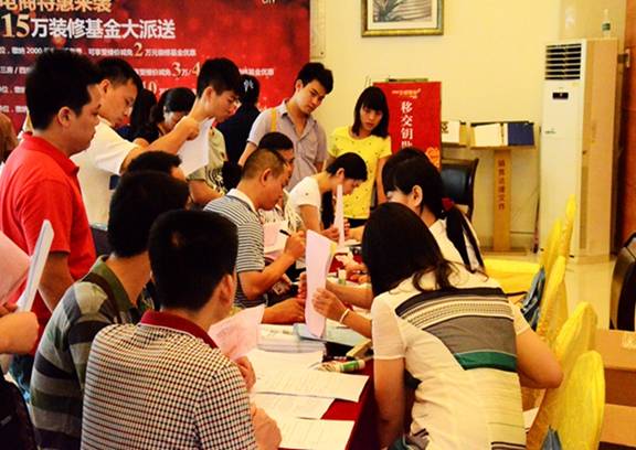 2014年6月29日上午8:30入伙工作准备完毕,鸿威·金都雅苑销售中心敞开大门,恭迎三期业主“回家”,9点钟迎来了入伙的第一批业主。签到组认真检查核对业主资料,做好登记;收费组一丝不苟,按照标准收取相关费用;签约组有条不紊,逐项为业主办理签字手续;钥匙组详细周到,为业主解释相关使用说明和注意事项;验房组不辞辛苦,楼上楼下,汗流浃背,带领业主验收房屋并做好相应的解释;咨询组对入伙过程中业主提出的工程质量、设计等方面的疑问,耐心进行解答,消除疑虑。同时深圳物业前来支持的同事也加入了验房的行列。