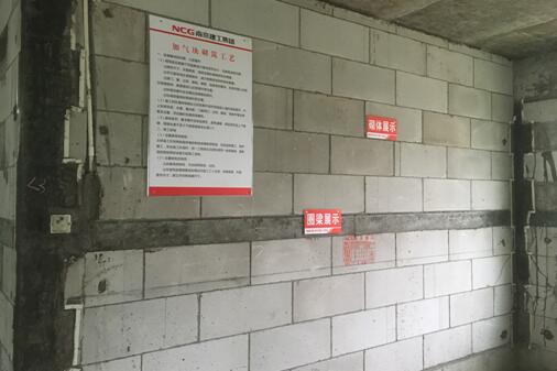 蒸压砂加砌墙体砌筑、二次结构施工工序样板,工艺标识清楚,操作规程上墙,该工序样板既是对作业人员操作要求、质量标准的可视化交底,也是大面积施工是否符合要求的判定依据。