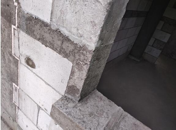 在门窗洞两侧预埋固定块(C20混凝土块),以便固定门窗框(或副框)。