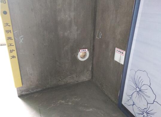 空调洞预制混凝土块U-PVC管位置准确及内外高差坡不小于20mm,砌筑时注意预制混凝土块方向,成型后无渗水倒坡现象,位置准确。