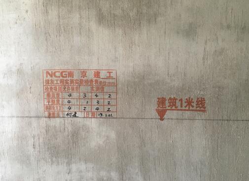 所有墙体实体质量抽测和观感质量检查,将检查结果在原位进行标注,建筑1米线标识清楚明了。