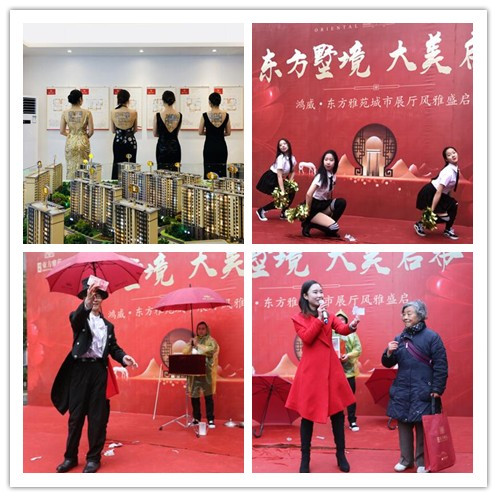东方雅苑城市展厅开放盛典揭幕仪式完成后,现场还奉上了一系列精彩纷呈的华美演出。温婉动人的乐曲展示、热情似火的舞曲表演、神秘奇幻的魔术表演同台亮相,华服模特户型秀更是引爆全场,赢得了到场来宾的阵阵掌声和喝彩;穿插进行的互动环节和幸运大抽奖,将开放盛典活动推向高潮。演出结束后,到场的来宾在主持人的引导下有序进入展厅,一时间人头攒动,可见黄山人民对鸿威地产的期待和信任。