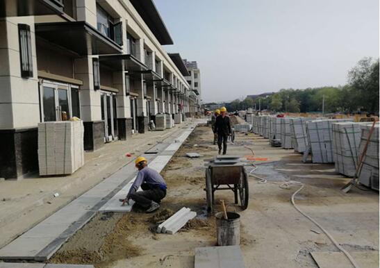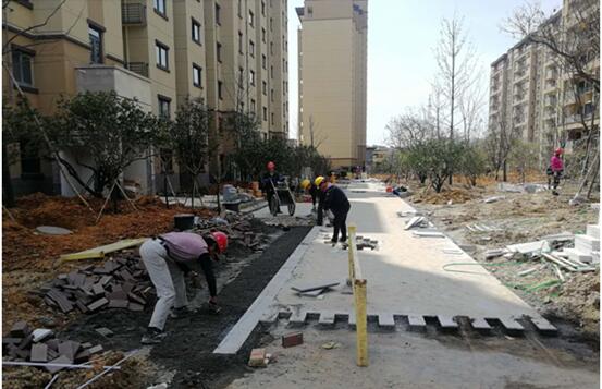 室外铺装、园林工程,集中人员、材料分区、分块,利用有利时间抢抓施工进度,截止4月底,叠墅区整体完成90%;小高层及高层区域铺装完成40%;4#商业铺装完成;园林景观工程,叠墅区整体完成70%;小高层及高层区域整体完成60%。